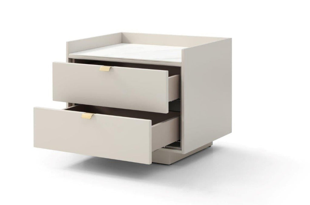 Saviour Bedside Table - White Marble & Beige