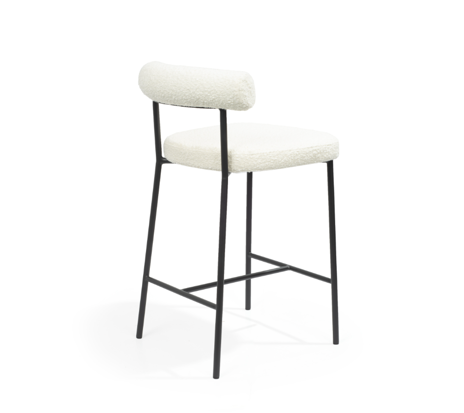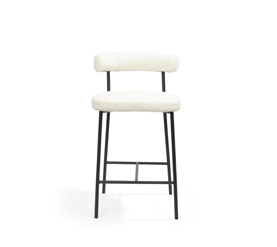 The Alita Stool combines contemporary design with sophisticated style, making it a versatile addition to any modern interior. Upholstered in Chex Bouclé Polar, the soft, textured fabric contrasts beautifully with sleek black powder-coated legs, creating a visually striking yet elegant piece.