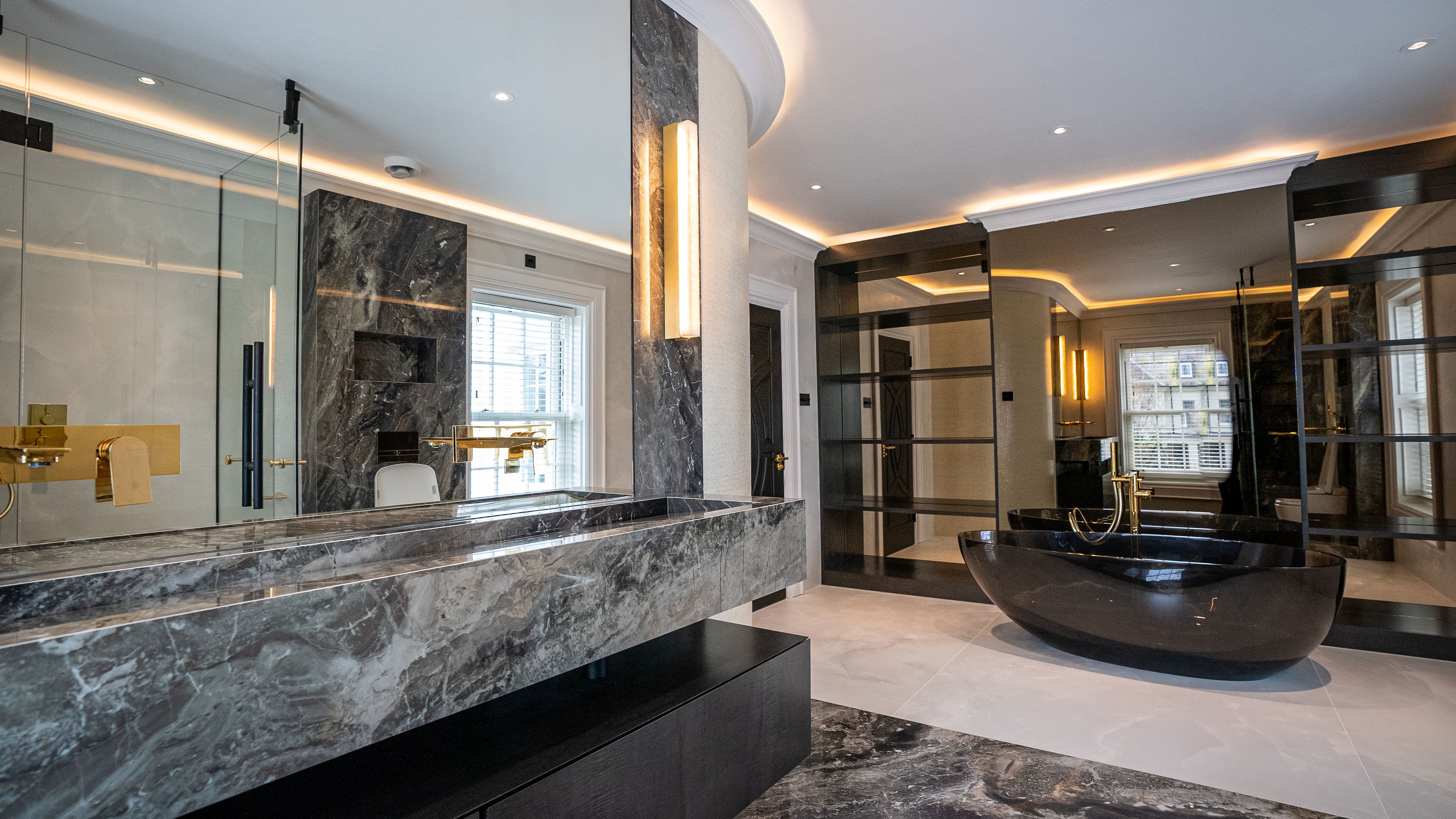 At the core of the transformation was a curated palette of the finest Italian furnishings, hand-selected to reflect timeless elegance and sophistication. Natural stones and richly veined marble were sourced to elevate key surfaces, setting a tone of understated grandeur throughout the residence.