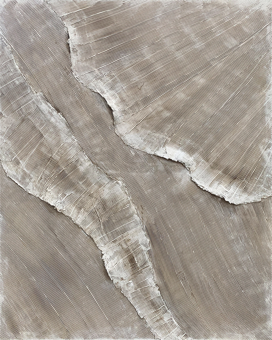 Falaise is a tactile exploration of nature’s forms. Inspired by canyon ridges and the quiet erosion of stone, this piece features delicately incised lines and a harmonious palette. It exudes grounded elegance and timeless calm, making it a serene statement in any refined setting.