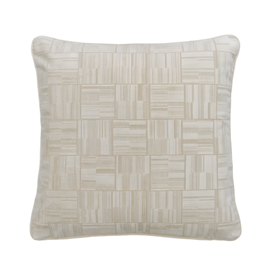 The Lexington Ivory Geometric Velvet Cushion features a refined and sophisticated design, combining neutral tones and a structured geometric pattern enhanced with Medici Chalk piping. The multi-toned epingle velvet texture adds a contemporary touch, making it the perfect addition to any modern or classic space. Filled with our luxurious feather inners for ultimate comfort.
